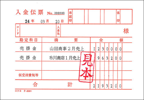 会計伝票には入金伝票、出金伝票、振替伝票などがあります。