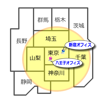| 八王子オフィス | 東京都八王子市子安町4-10-9西村ビル3F TEL:042-625-9967 |