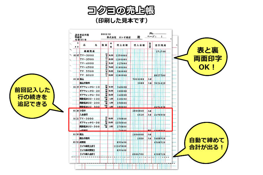 カシオ販売管理で自動でコクヨの売上帳がラクラク印刷!