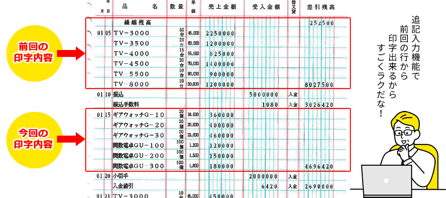 カシオ販売管理システムは売上帳の追記印刷ができます!