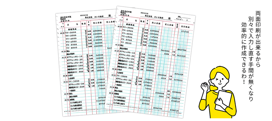 業務に合わせてお選びいただけるので、素早く元帳印刷ができて作業時間の短縮ができます!