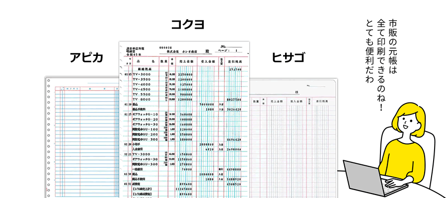 コクヨやヒサゴ、アピカなど市販の売上帳はもちろん、