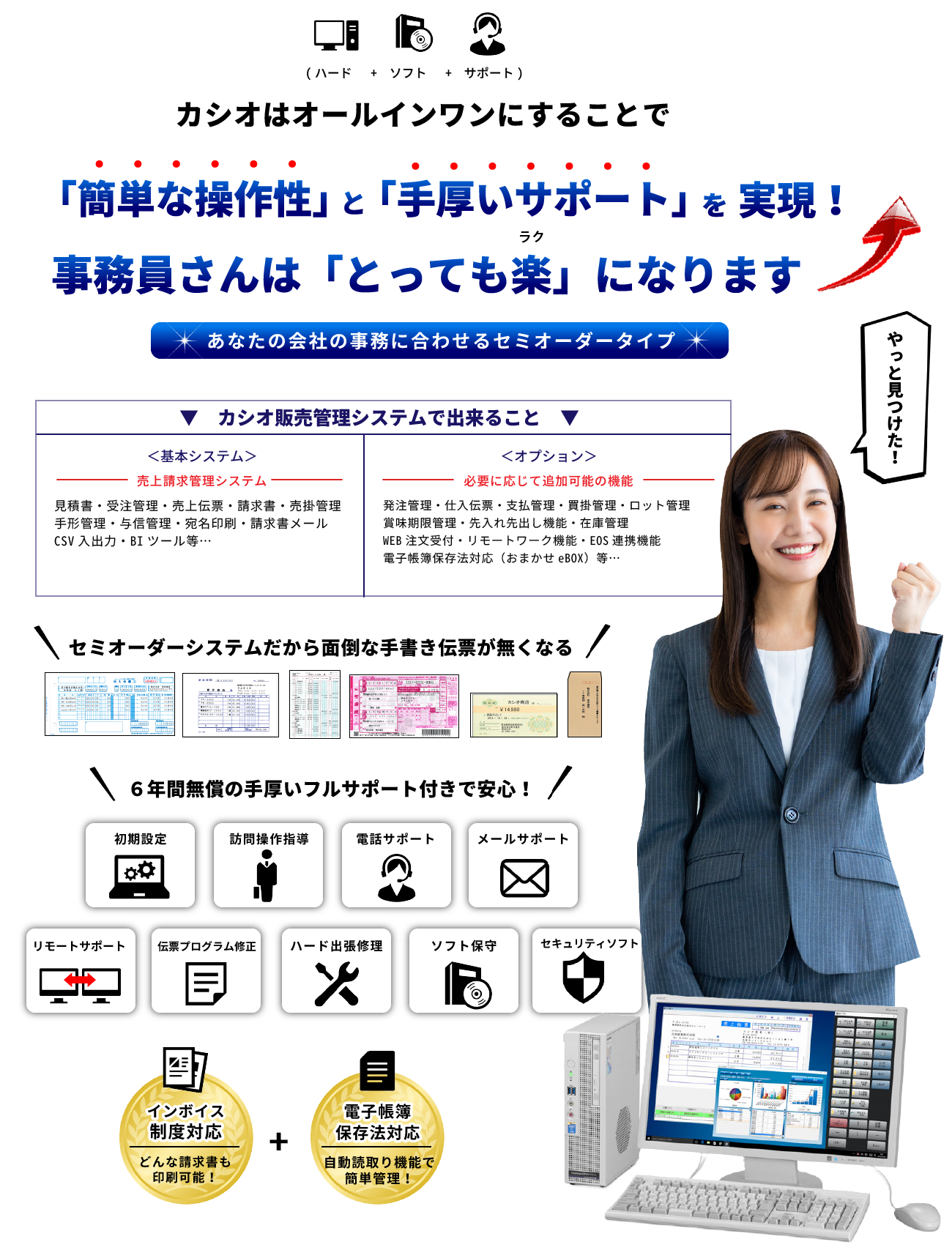 親切・丁寧・分かりやすくを心掛けております。カシオ販売管理システムには6年間の手厚いフルサポートが付いており、