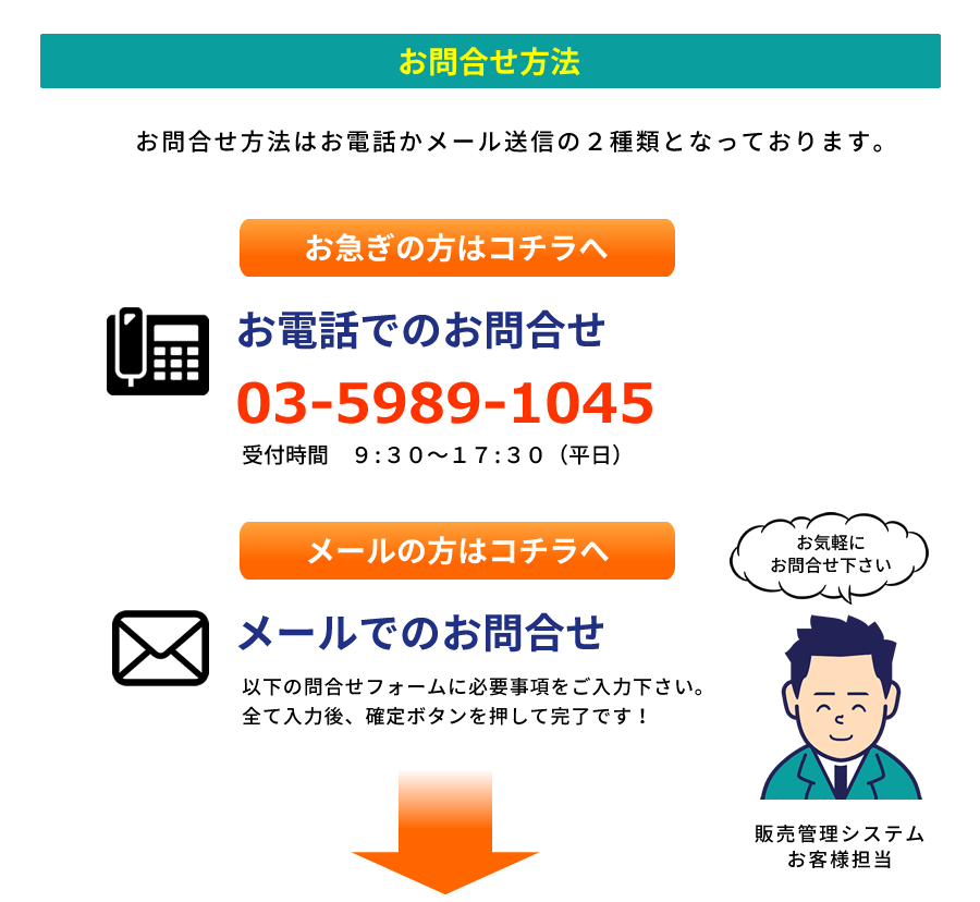 弊社へのお問い合わせは、入力フォームの所定項目をご入力いただき、個人情報の取り扱い関する下記の事項についてご同意の上、お問い合わせください。暗号化した入力フォームをページに埋め込めており、通信内容は暗号化して送信されます。こちらからしつこい営業等は一切行いませんので、お気軽にお問い合わせ下さい。お急ぎの際はお電話でも承っております。