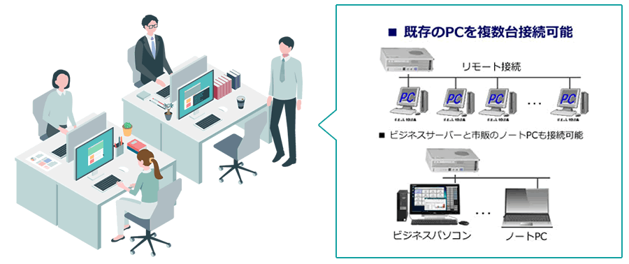 複数台のパソコンを接続し、システムを稼働できます!