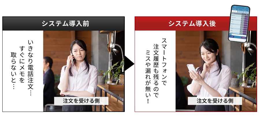 スマートフォンでの注文入力がとてもシンプルで簡単なので、IT機器の操作が苦手な得意先でも安心して使えます。